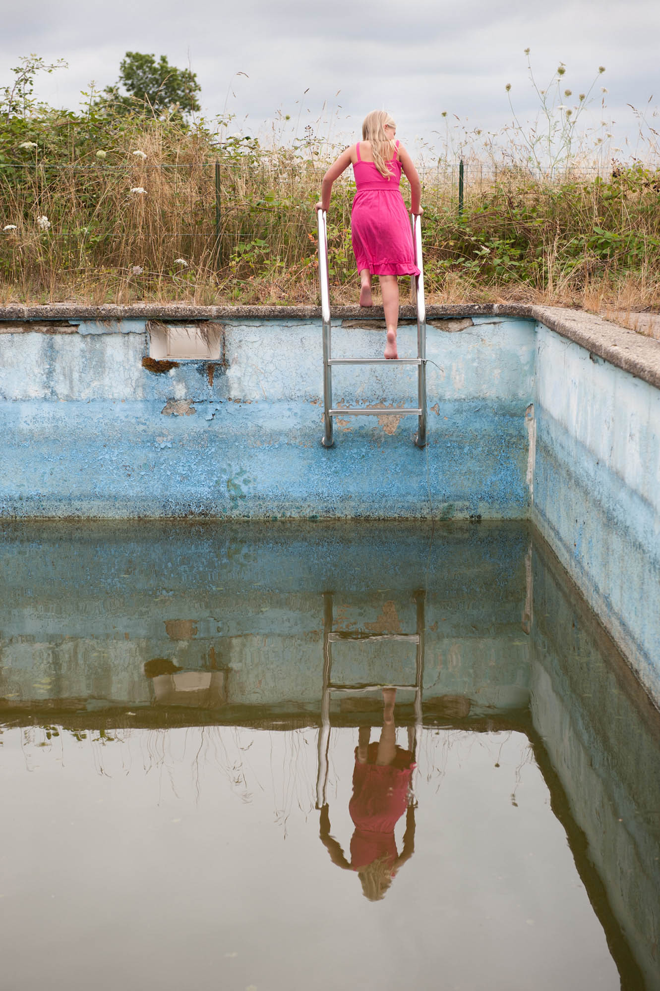De kinderen die zij, soms ook overdag, in deze settings plaatst vormen een poëtisch contrast met de verlaten locaties. De foto’s vertellen het autobiografische verhaal van Van Kooij over het zoeken naar veiligheid in een grote buitenwereld.